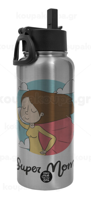 Super mom, Metal mug thermo Silver with Straw and Spout Lid (Stainless steel), double wall, 950ml