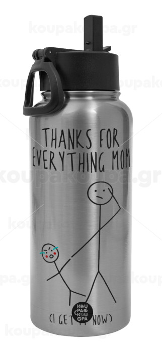 Thanks for everything mom, Metal mug thermo Silver with Straw and Spout Lid (Stainless steel), double wall, 950ml