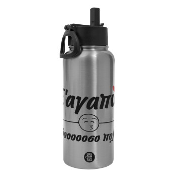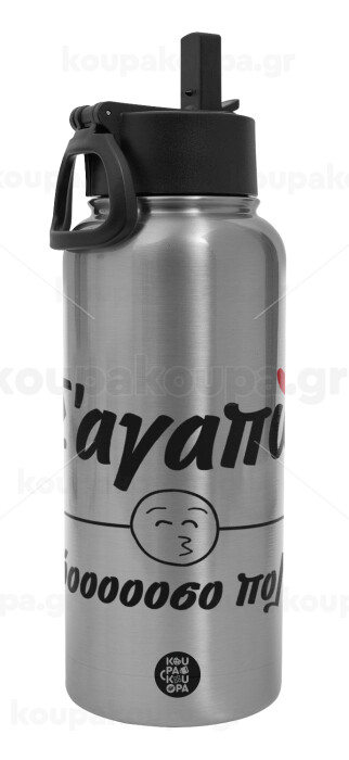 Σ΄ αγαπώ τόοοοοοσο πολύ!!!, Metal mug thermo Silver with Straw and Spout Lid (Stainless steel), double wall, 950ml