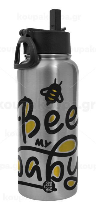 Bee my BABY!!!, Metal mug thermo Silver with Straw and Spout Lid (Stainless steel), double wall, 950ml