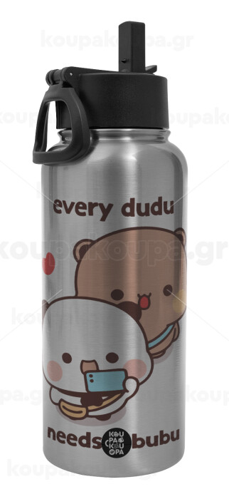 Every Dudu needs a bubu, Metal mug thermo Silver with Straw and Spout Lid (Stainless steel), double wall, 950ml
