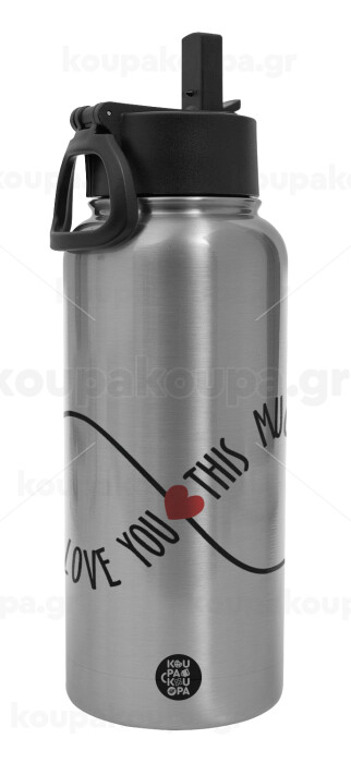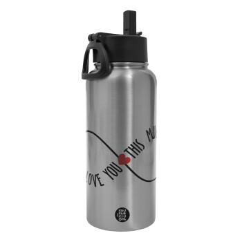 I Love you thisssss much (infinity), Metal mug thermo Silver with Straw and Spout Lid (Stainless steel), double wall, 950ml