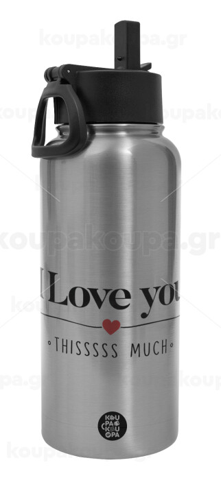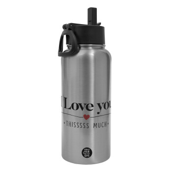 I Love you thisssss much, Metal mug thermo Silver with Straw and Spout Lid (Stainless steel), double wall, 950ml