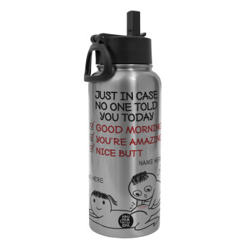 Just in case no one told you today..., Metal mug thermo Silver with Straw and Spout Lid (Stainless steel), double wall, 950ml