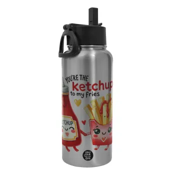 Ketchup To My Fries, Metal mug thermo Silver with Straw and Spout Lid (Stainless steel), double wall, 950ml