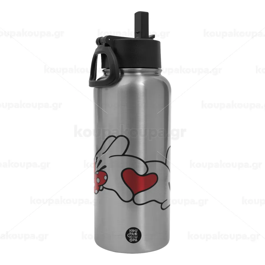 Love hands, Metal mug thermo Silver with Straw and Spout Lid (Stainless steel), double wall, 950ml