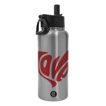 Love, Metal mug thermo Silver with Straw and Spout Lid (Stainless steel), double wall, 950ml