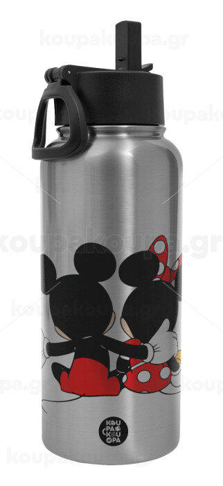 mickey and minnie hags, Metal mug thermo Silver with Straw and Spout Lid (Stainless steel), double wall, 950ml