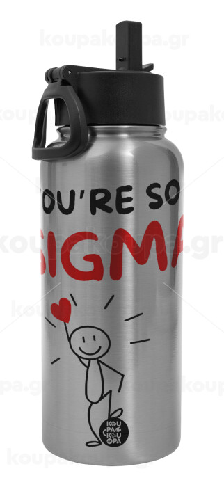 Sigma Valentine's Day , Metal mug thermo Silver with Straw and Spout Lid (Stainless steel), double wall, 950ml