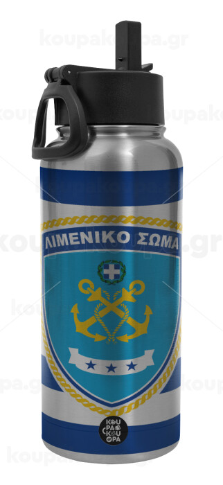 Hellenic coast guard, Metal mug thermo Silver with Straw and Spout Lid (Stainless steel), double wall, 950ml