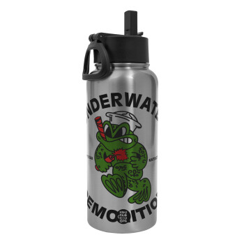 Underwater Demolition, Metal mug thermo Silver with Straw and Spout Lid (Stainless steel), double wall, 950ml