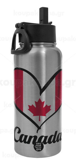 Canada flag, Metal mug thermo Silver with Straw and Spout Lid (Stainless steel), double wall, 950ml