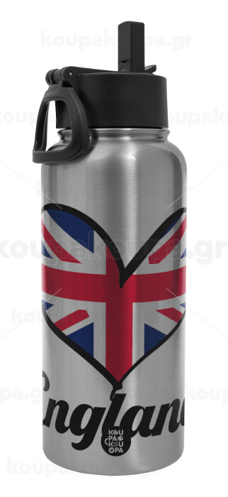 England flag, Metal mug thermo Silver with Straw and Spout Lid (Stainless steel), double wall, 950ml