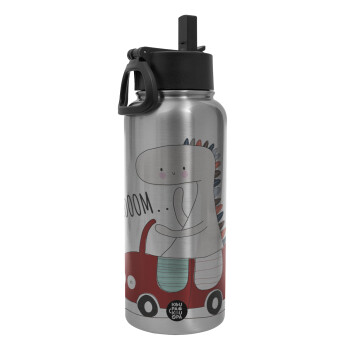 Βρουμ βρουμ, Metal mug thermo Silver with Straw and Spout Lid (Stainless steel), double wall, 950ml