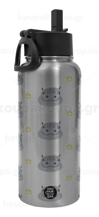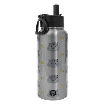 Hippo, Metal mug thermo Silver with Straw and Spout Lid (Stainless steel), double wall, 950ml