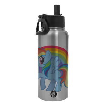 My Little Pony, Metal mug thermo Silver with Straw and Spout Lid (Stainless steel), double wall, 950ml