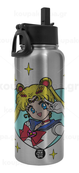 Sailor Moon star, Metal mug thermo Silver with Straw and Spout Lid (Stainless steel), double wall, 950ml