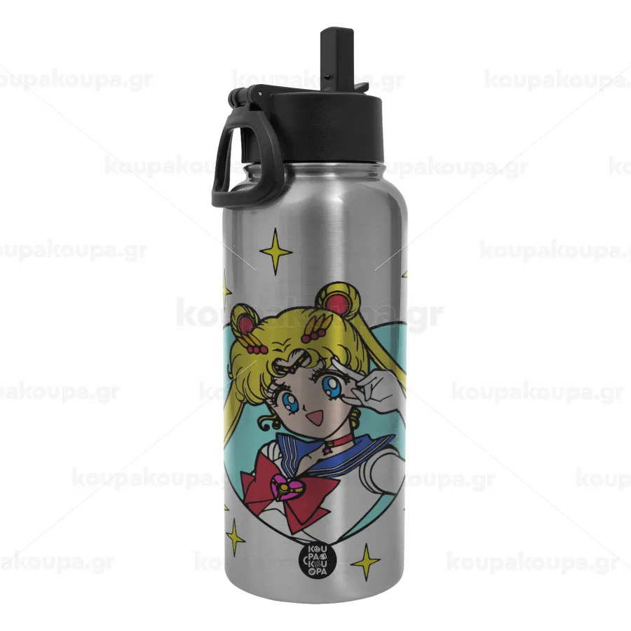 Sailor Moon star, Metal mug thermo Silver with Straw and Spout Lid (Stainless steel), double wall, 950ml