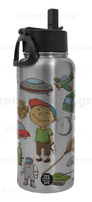 Toys Boy, Metal mug thermo Silver with Straw and Spout Lid (Stainless steel), double wall, 950ml