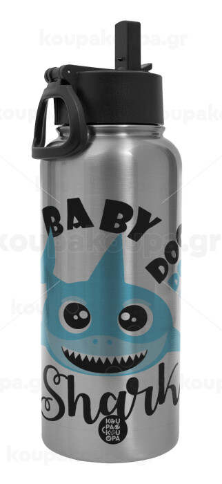 Baby Shark (boy), Metal mug thermo Silver with Straw and Spout Lid (Stainless steel), double wall, 950ml