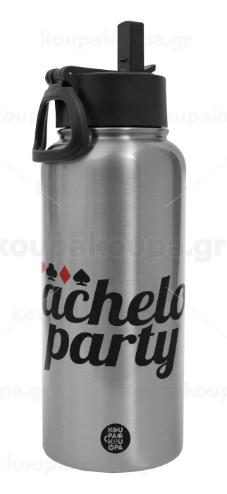 Bachelor party, Metal mug thermo Silver with Straw and Spout Lid (Stainless steel), double wall, 950ml