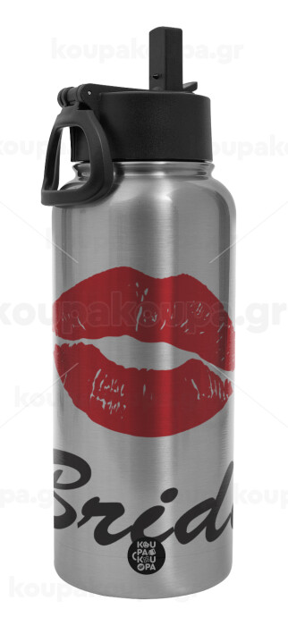Bride kiss, Metal mug thermo Silver with Straw and Spout Lid (Stainless steel), double wall, 950ml