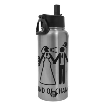 Couple Wind of Change, Metal mug thermo Silver with Straw and Spout Lid (Stainless steel), double wall, 950ml