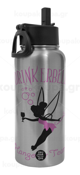 Drinkerbell bachellor, Metal mug thermo Silver with Straw and Spout Lid (Stainless steel), double wall, 950ml