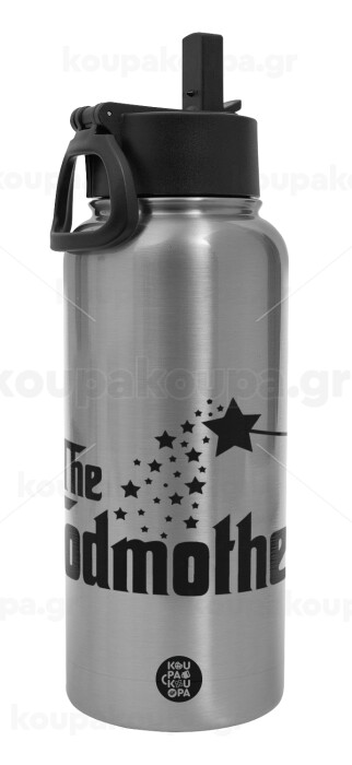 Fairy GodMother, Metal mug thermo Silver with Straw and Spout Lid (Stainless steel), double wall, 950ml