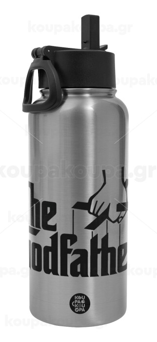 The Godfather, Metal mug thermo Silver with Straw and Spout Lid (Stainless steel), double wall, 950ml