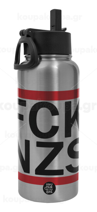 FCK NZS, Metal mug thermo Silver with Straw and Spout Lid (Stainless steel), double wall, 950ml