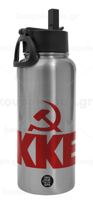 ΚΚΕ, Metal mug thermo Silver with Straw and Spout Lid (Stainless steel), double wall, 950ml