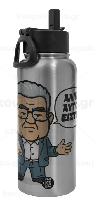 Κουτσούμπας, "Αλλά αυτοί είστε!", Metal mug thermo Silver with Straw and Spout Lid (Stainless steel), double wall, 950ml