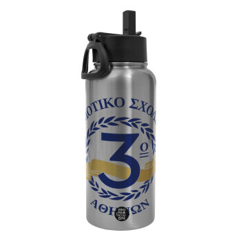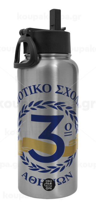 Έμβλημα Σχολικό μπλε, Metal mug thermo Silver with Straw and Spout Lid (Stainless steel), double wall, 950ml