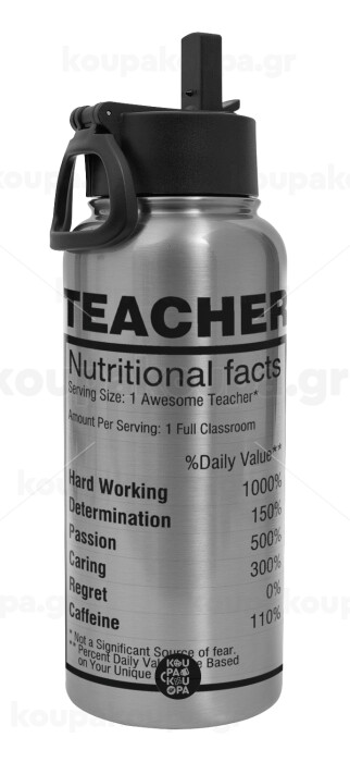 teacher nutritional facts, Metal mug thermo Silver with Straw and Spout Lid (Stainless steel), double wall, 950ml