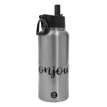 Bonjour, Metal mug thermo Silver with Straw and Spout Lid (Stainless steel), double wall, 950ml