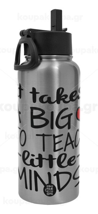 It takes big heart to teach little minds, Metal mug thermo Silver with Straw and Spout Lid (Stainless steel), double wall, 950ml