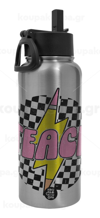 Teach, Metal mug thermo Silver with Straw and Spout Lid (Stainless steel), double wall, 950ml