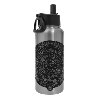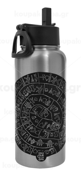 Δίσκος Φαιστού, Metal mug thermo Silver with Straw and Spout Lid (Stainless steel), double wall, 950ml