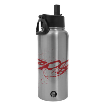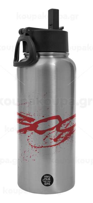 Οι 300 της Σπάρτης, Metal mug thermo Silver with Straw and Spout Lid (Stainless steel), double wall, 950ml