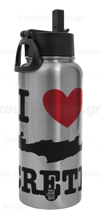 I Love Crete, Metal mug thermo Silver with Straw and Spout Lid (Stainless steel), double wall, 950ml