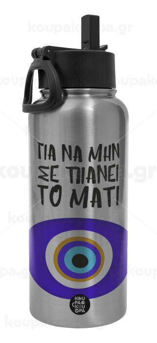 Για να μην σε πιάνει το μάτι, Metal mug thermo Silver with Straw and Spout Lid (Stainless steel), double wall, 950ml