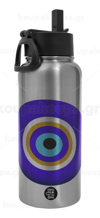 Το μάτι, Metal mug thermo Silver with Straw and Spout Lid (Stainless steel), double wall, 950ml