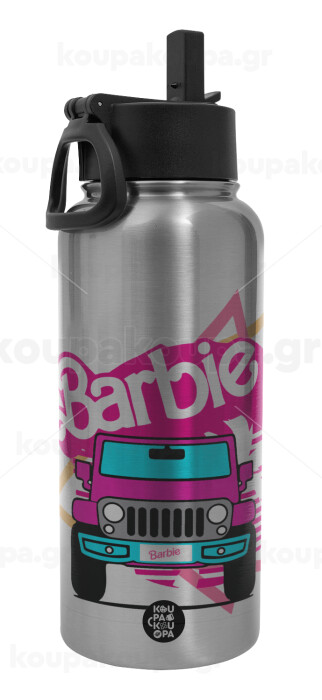 Barbie car, Metal mug thermo Silver with Straw and Spout Lid (Stainless steel), double wall, 950ml