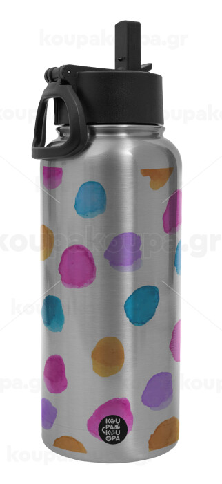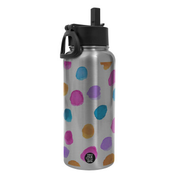 Watercolor dots, Metal mug thermo Silver with Straw and Spout Lid (Stainless steel), double wall, 950ml