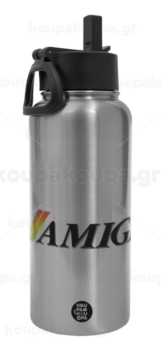 amiga, Metal mug thermo Silver with Straw and Spout Lid (Stainless steel), double wall, 950ml