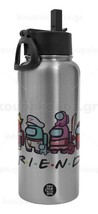 Among US Friends, Metal mug thermo Silver with Straw and Spout Lid (Stainless steel), double wall, 950ml