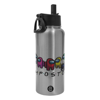 Among US impostor, Metal mug thermo Silver with Straw and Spout Lid (Stainless steel), double wall, 950ml