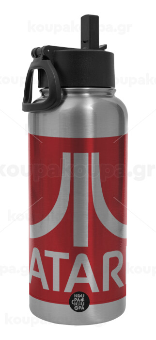 atari, Metal mug thermo Silver with Straw and Spout Lid (Stainless steel), double wall, 950ml