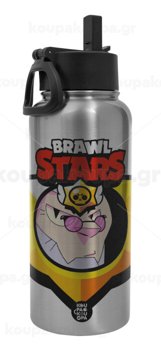 Brawl Stars Byron, Metal mug thermo Silver with Straw and Spout Lid (Stainless steel), double wall, 950ml